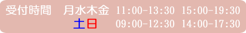 | 土日 | 09:00 - 12:30 | 14:00 - 17:30 |